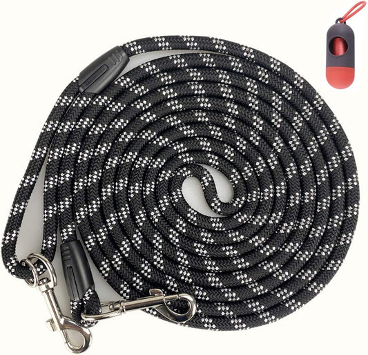 • Long Rope Dog Leash for Dog Training 12FT 20FT 30FT 50FT, Reflective Threads Dog Leashes Tie-Out Check Cord Recall Training Agility Lead for Large Medium Small Dogs (10Mm*12Ft, Black)
