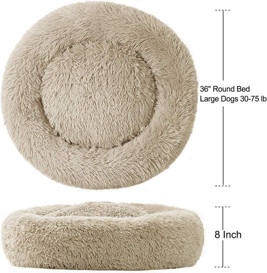 Washable Dog round Bed Large, Donut Dog Bed Large Dog, Comfy Dog Calming Cuddler Bed